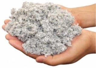 新聞紙を細かく砕いて防蟻・防炎処理を施したものを、現場で吹き込みます。