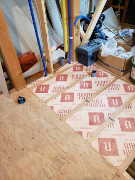 床は合板の継ぎ目に「気密テープ」を貼って合板気密とします。