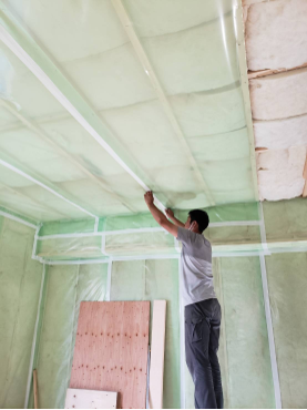 天井には断熱材(高性能グラスウール16kg105㎜厚)を2層、施工します。