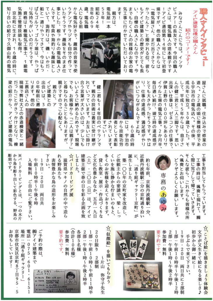 お問い合わせ 無料お見積もり 資料請求 HOMEアイビ通信アイビ通信14号 アイビ通信14号 投稿日:2018年5月1日 カテゴリー: アイビ通信一覧はこちら アイビ建築について 会社案内 6年連続受賞の品格 スタッフ紹介 アクセスマップ 施工事例 施工事例一覧 断熱・気密リフォーム 耐震・断熱リフォーム 新築 全面リフォーム お客様の声 お客様の声一覧 お役立ち情報 高性能エコハウスとは 選ばれる理由 高性能エコハウスショールーム イベント アイビ通信 新築ご相談の流れ よくある質問 ブログ お問い合わせ お問い合わせ 無料お見積もり オンライン相談 資料請求 ご相談はこちらからお問い合わせください。 お見積もりや疑問など、どんな小さなことでもお気軽にご連絡ください。 We are waiting for requests for information and estimates. For any details, please contact us. ホーム 会社案内 会社案内6年連続受賞の品格スタッフ紹介アクセスマップ 施工事例 施工事例一覧 断熱・気密リフォーム 耐震・断熱リフォーム 新築 全面リフォーム お客様の声 お役立ち情報 高性能エコハウスとは選ばれる理由高性能エコハウスショールームイベントアイビ通信新築ご相談の流れよくある質問ブログ お問い合わせ お問い合わせ無料お見積もりオンライン相談資料請求 Copyright © 2018 アイビ建築 All Rights Reserved.