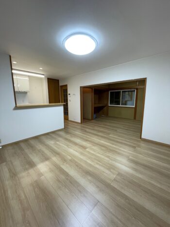 内装・外装交換、床断熱、一部壁と天井断熱工事を行いました。浴室は外皮面を断熱しました。キッチンとリビングの床材を変え、キッチンにはフローリングではなく、清掃性の良いフロアタイルを提案しました。良いアクセントになったと思います。お客様には「快適に過ごしています。内窓を付けた事により防音効果を感じる。」とおっしゃっていただきました。 担当:櫻井