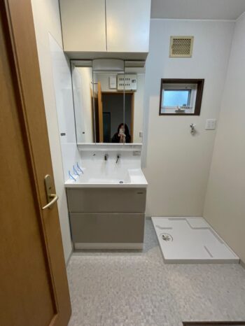 新しい洗面台はモダンな空間を作り出しています。