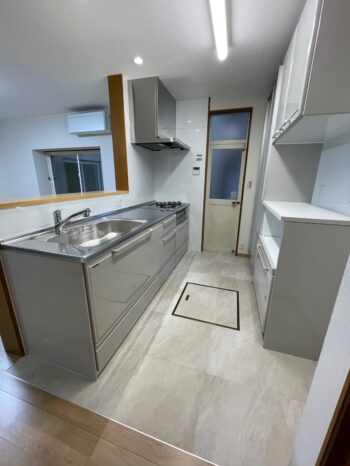 キッチンの床材には清掃性の良いフロアタイルをご提案。