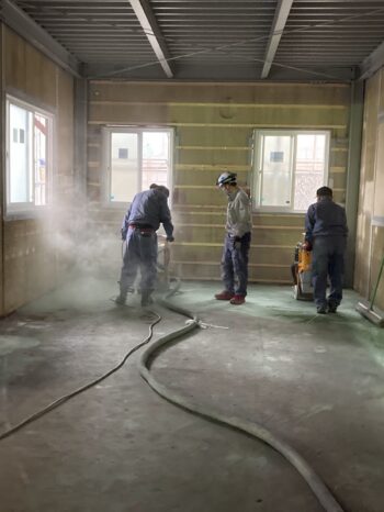土間の不陸が大きく、コンクリートの床がガタついていたため、大きな研磨機で平滑にしました